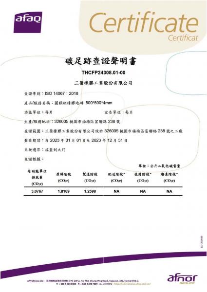 我們公司自豪地宣布已成功取得 ISO 14067:2018 產品碳足跡證書,持續領先橡膠地板材產業,朝向低碳永續的目標邁進。